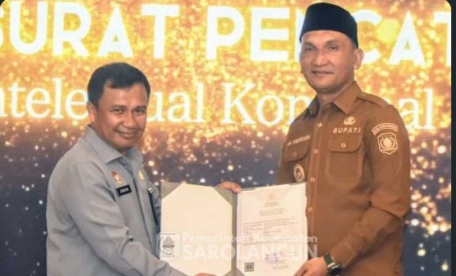 Sarolangun,Bacajambi id.Dalam suasana peringatan Hari Ulang Tahun Pengayoman ke-80 yang digelar di Kantor Wilayah Kementerian Hukum dan HAM Provinsi Jambi, Kabupaten Sarolangun mencatat prestasi membanggakan. Bupati H. Hurmin secara langsung menerima Sertifikat Kekayaan Intelektual Komunal (KIK) dari pemerintah pusat sebagai bentuk pengakuan atas tiga warisan budaya khas daerahnya.