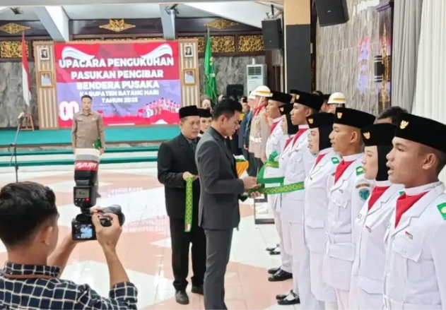 Batanghari – Sebanyak 35 putra-putri terbaik Kabupaten Batang Hari sebagai Pasukan Pengibar Bendera Pusaka (Paskibraka) Tahun 2025 di kukuhkan Jumat Malam (15/8/2025) Prosesi Pengukuhan dilakukan Bupati Batang Hari, Muhammad Fadhil Arief di ruang kaca Rumah Dinas Bupati Batang Hari.