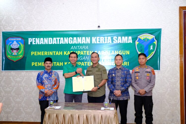 Batanghari – Pemerintah Kabupaten Batang Hari dan Pemerintah Kabupaten Sarolangun resmi mengikat komitmen kerjasama strategis melalui penandatanganan kesepakatan bersama pada hari Jum’at (08/08). Acara penandatanganan dilaksanakan di Aula Rumdis Bupati Sarolangun.